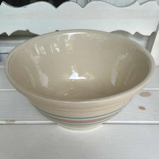 Vintage McCoy Pink & Blue Stripped 12" Large Mixing Bowl