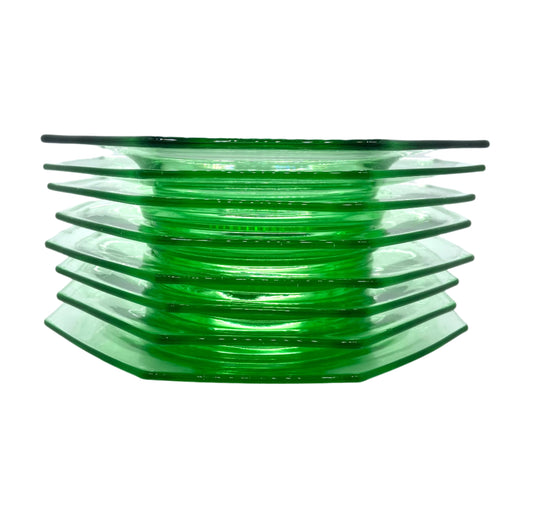 Vintage Octagon Green Luncheon Plates, Art Deco, Set of 8