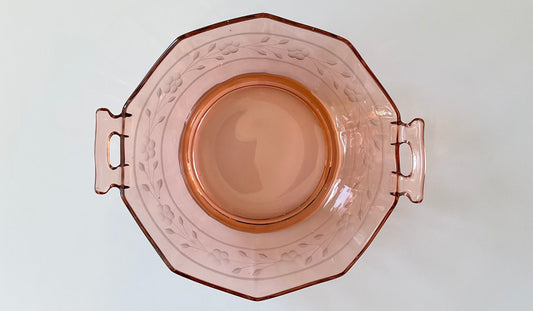 Jeanette Pink Depression Glass Handled Hexagon Candy Dish 10” x 3”