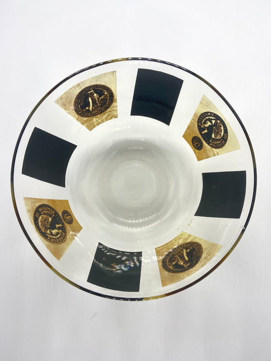 Mid Century Large Bowl With Black And Gold Coins