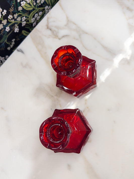 Set of 2, Vintage Fostoria Coin Candlestick Holders