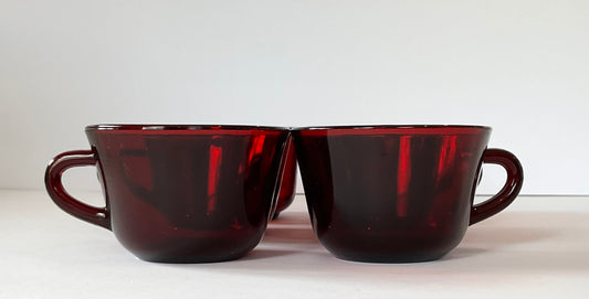 Set of 4, Vintage Anchor Hocking Ruby Red Coffee Cups