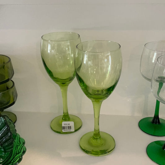 Set of 2, Cristal Copa Versalles Vino Lime/Apple Green Wine Glasses