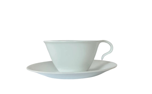 Set of 2, Vintage Anchor Hocking Gold Rim Swirl Milk Glass Cup + Saucers