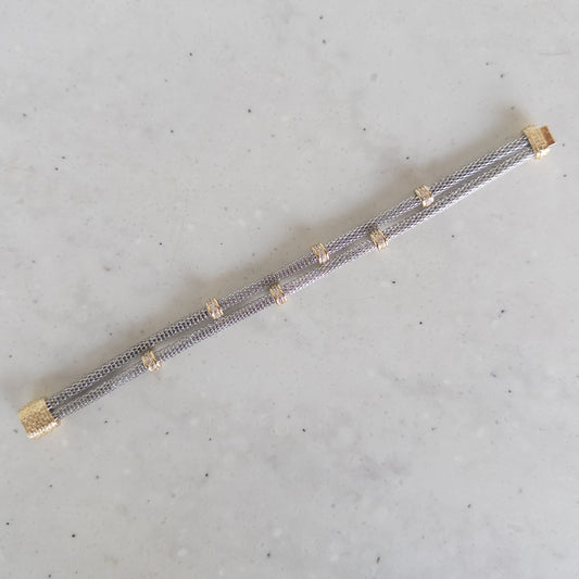 Two Strand Mixed-Metal Small CZ Magnetic Bracelet