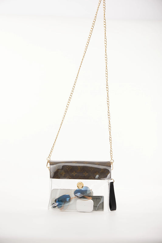 Upcycled LV Crossbody Clear Bag, Stadium Approved Bag