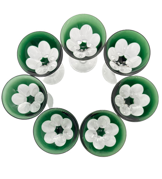 Val St Lambert Osram Emerald Green Roemer 5 1/4" Champagne Glasses Set of 7