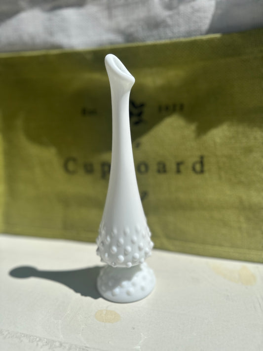 Vintage Fenton White Hobnail Glass Footed Swung Bud Vase