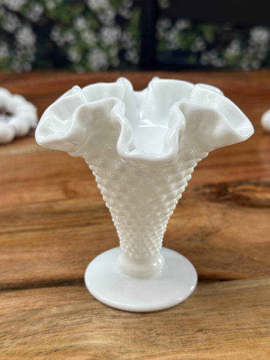 Vintage Fenton White Milk Glass Hobnail Small Trumpet Vase