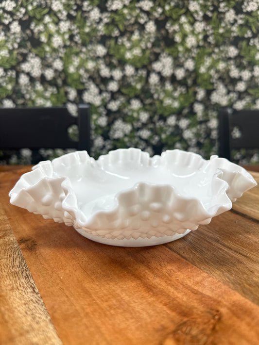 Vintage Fenton Hobnail Ruffled Rim Bowl Dish