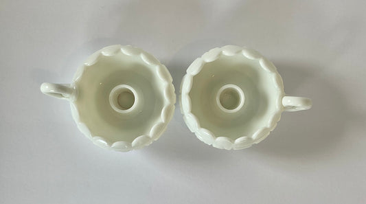 Vintage Fenton Milk Glass Block and Star Handled Candlestick Holders