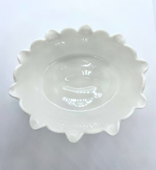 Vintage Oval Westmoreland Scalloped Footed Paneled Grape Milk Glass Bowl