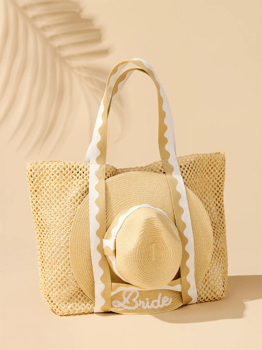 Natural "Bride" Hat And Tote Set