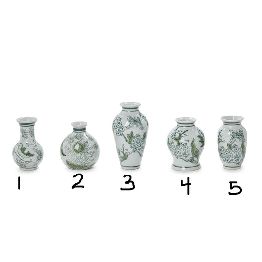 Primrose and Lotus Hand-Painted Mini Green and White Chinoiserie Vases (*Multiple Sizes*)