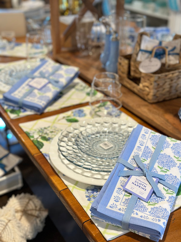 Hydrangea Set of 6 Hemstitch Cocktail Napkins with Hand Embroidered Details