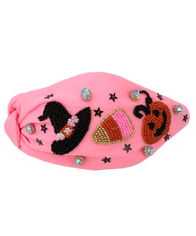 Pink Ghost Rhinestone Halloween Top Knot Seed Beaded Handmad