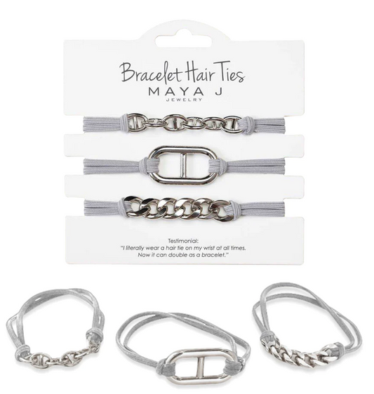Bracelet Hair Tie - Grey Elastic Cord Silver Links