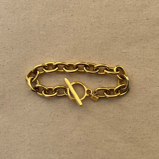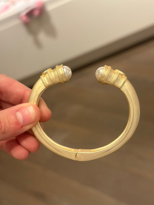 Gold Onyx Pearl + Crystal End Bangle Bracelet