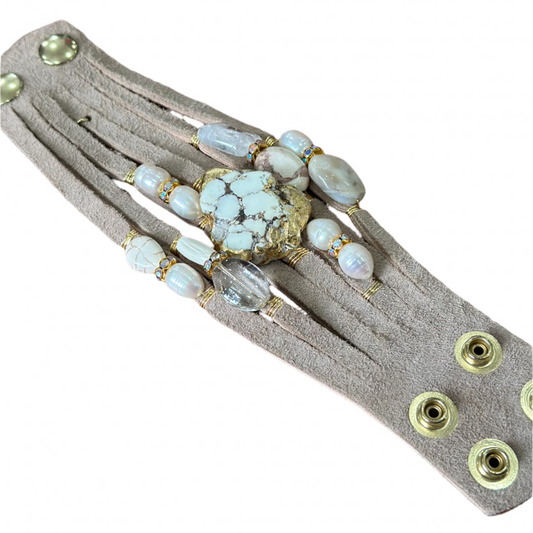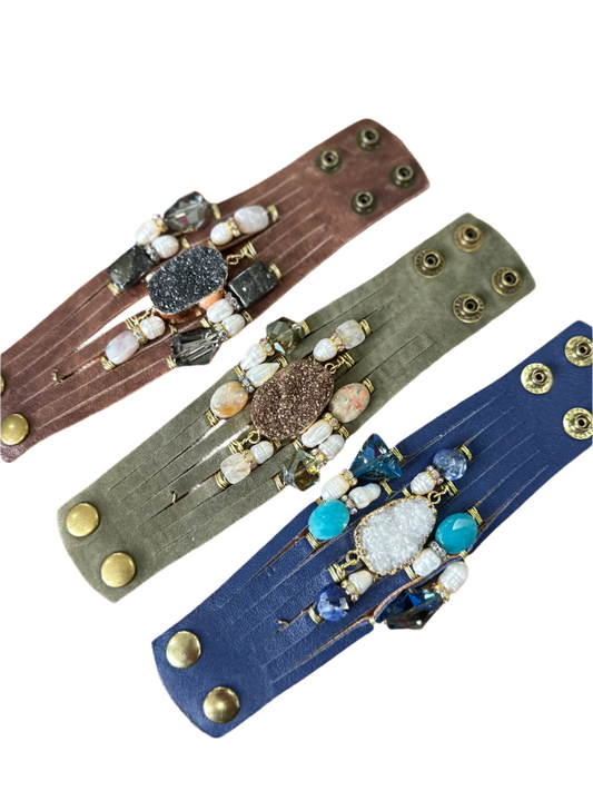 Gem and Pearl Wide Leather Cuff (* Multiple Styles)