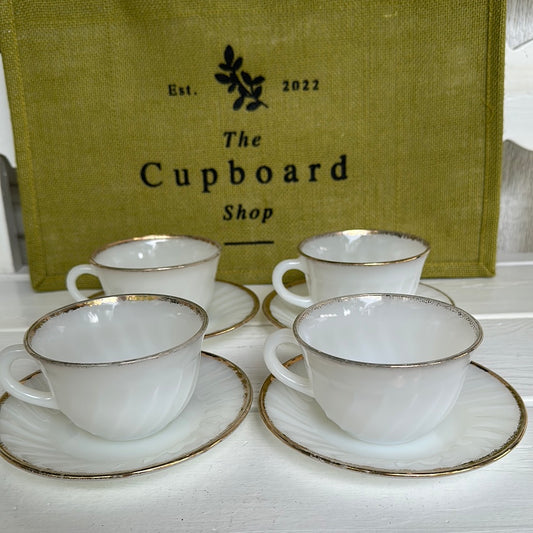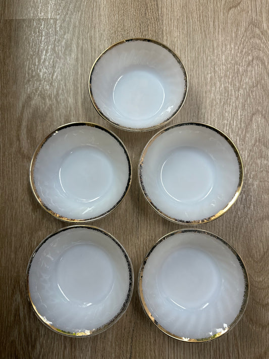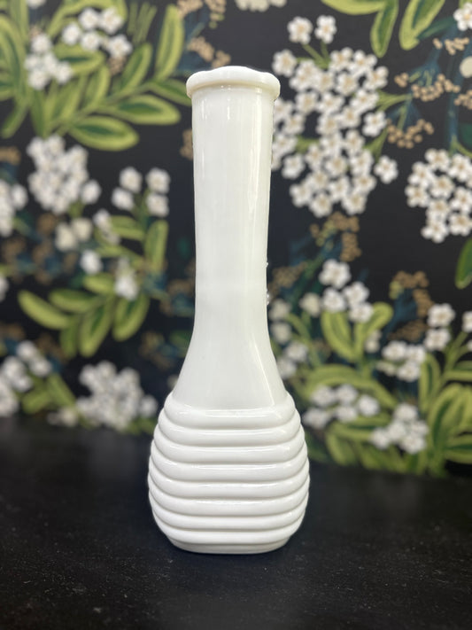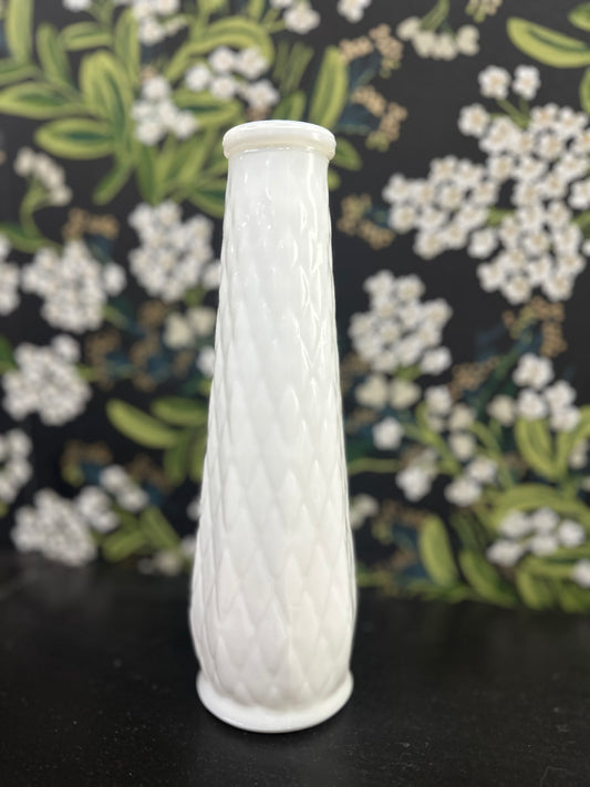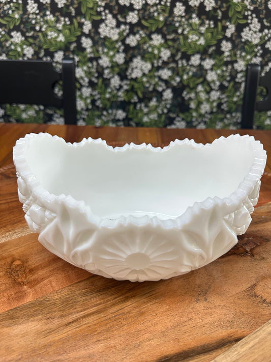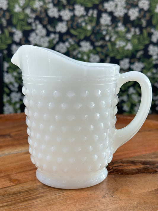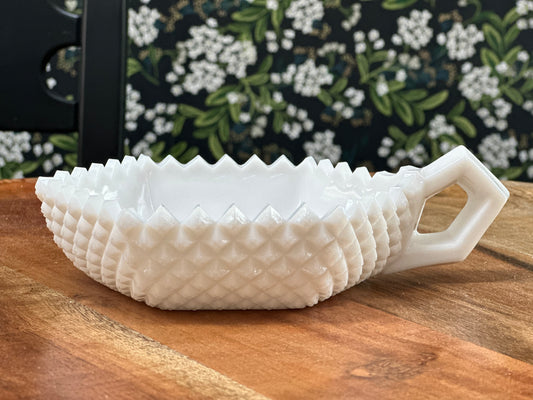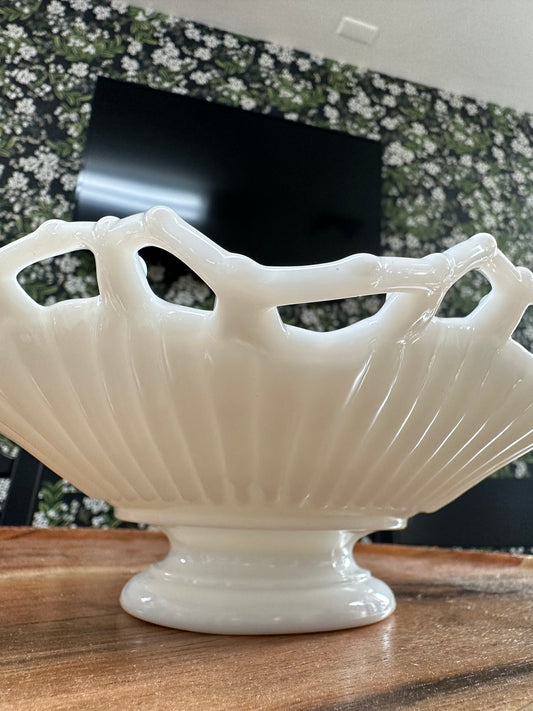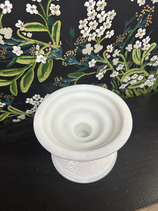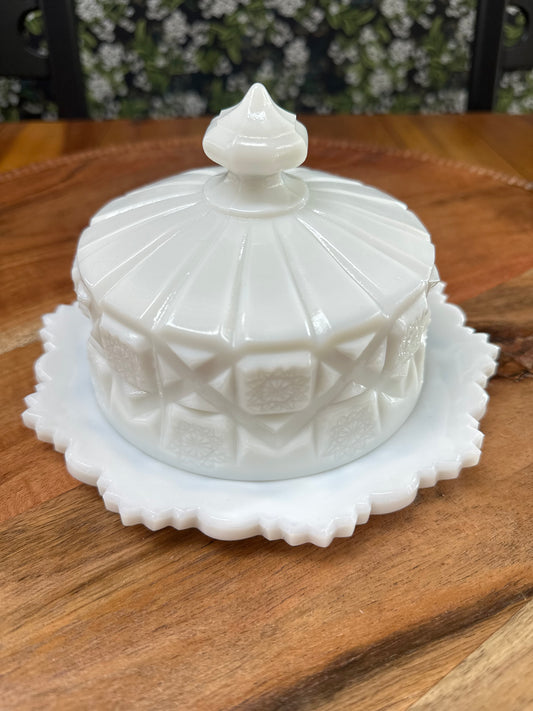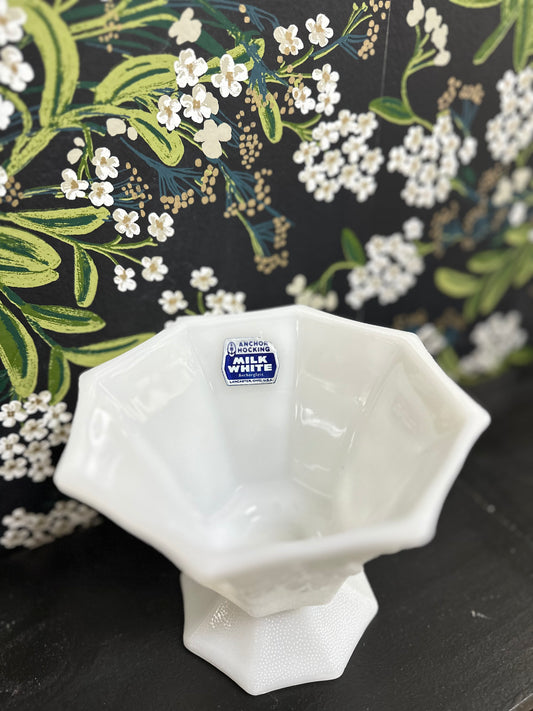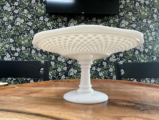 Milk glass is an opaque or translucent, milk-white or colored glass that can be blown or pressed into a wide variety of shapes. First made in Venice in the 16th century, colors include blue, pink, yellow, brown, black, and white