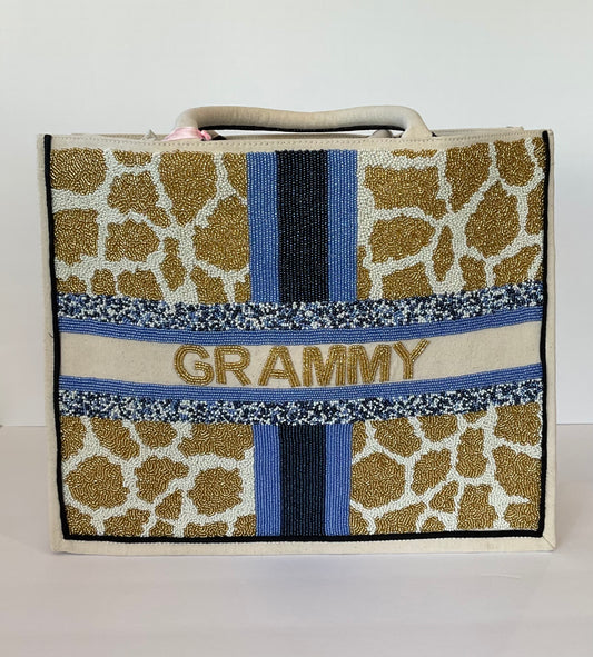 Giraffe Pattern Large Beaded Tote