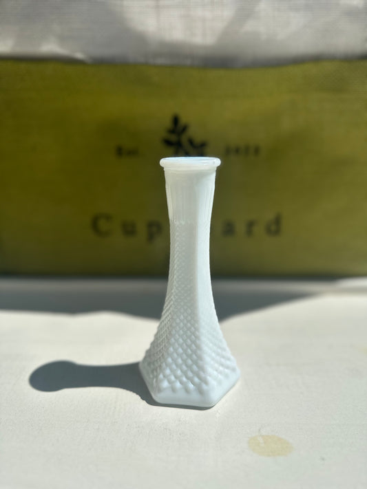 Vintage Randell Milk Glass Diamond Quilt 9" Flared Bottom Bud Vase