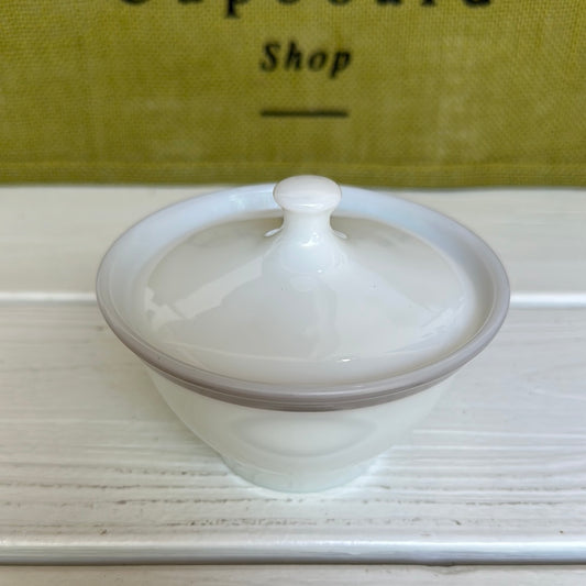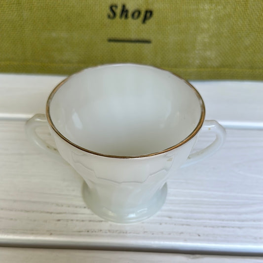 Vintage Fire-King Swirl Milk Glass Sugar Bowl w/ Two Handles