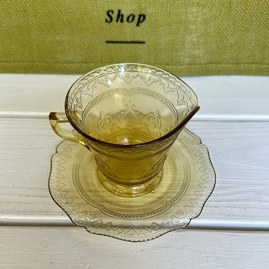 Vintage 1930 Yellow Depression Creamer w/ Plate