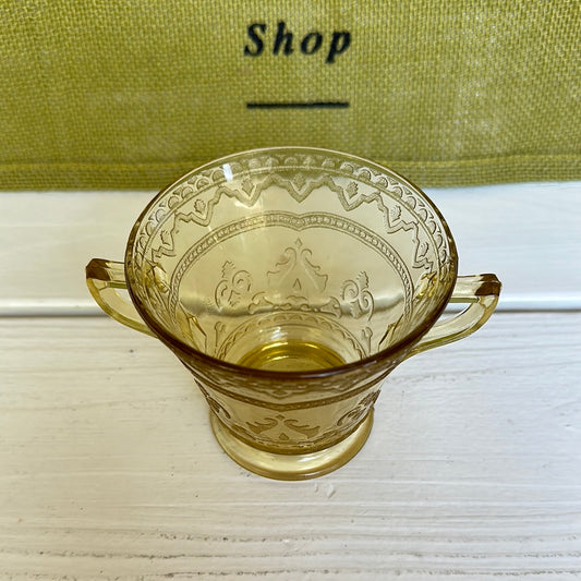Vintage 1930 Yellow Depression Glass Sugar Bowl Style 2