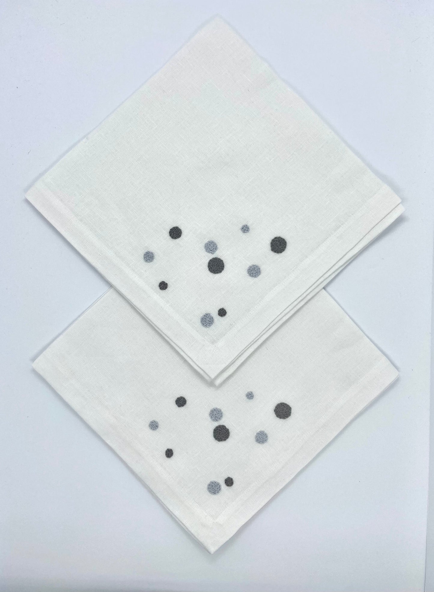 Bubble Dot White Britch Smoke Grey Linen Napkin 22 X 22