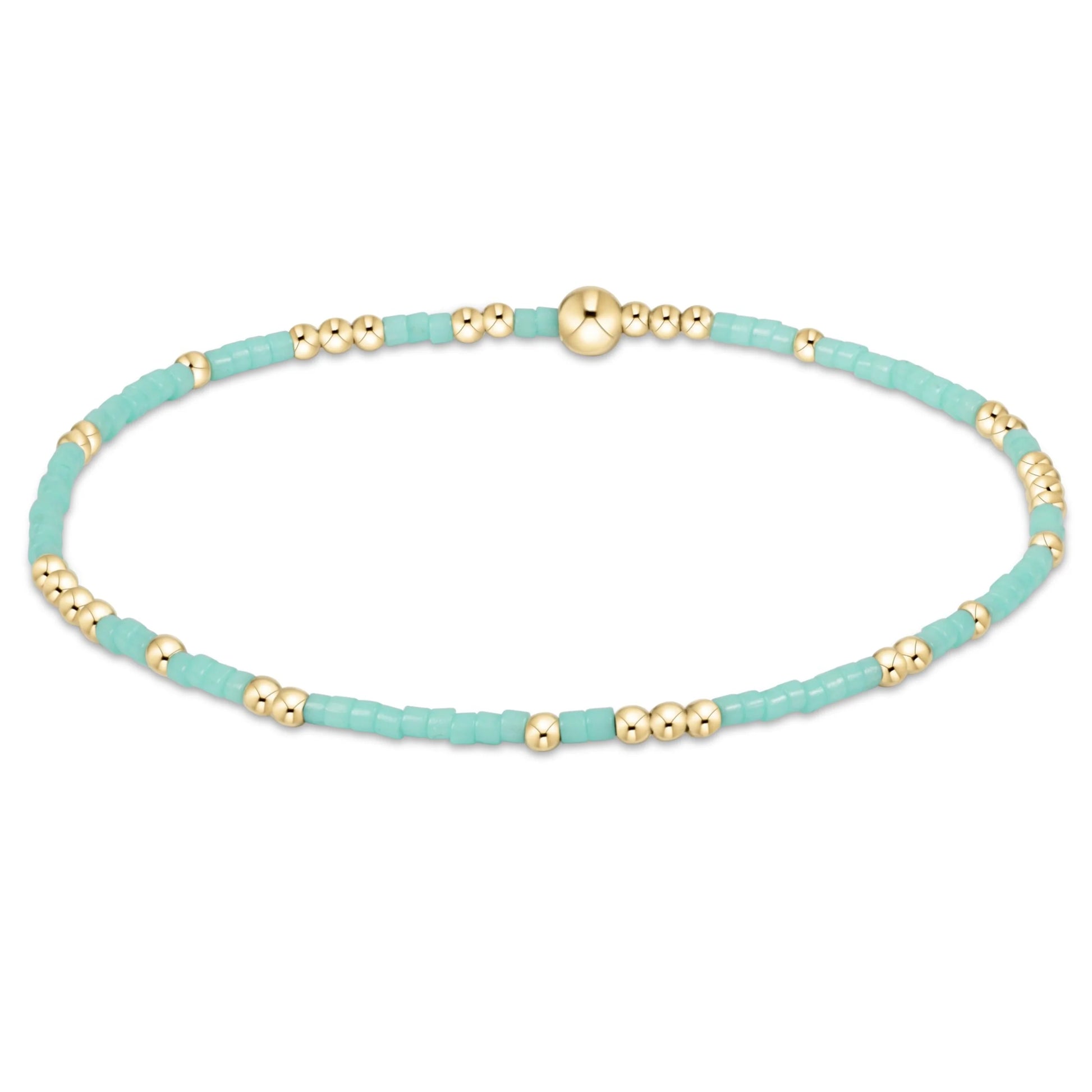 Hand beaded on high performance elastic for a slight stretch to easily roll on and off your wrist