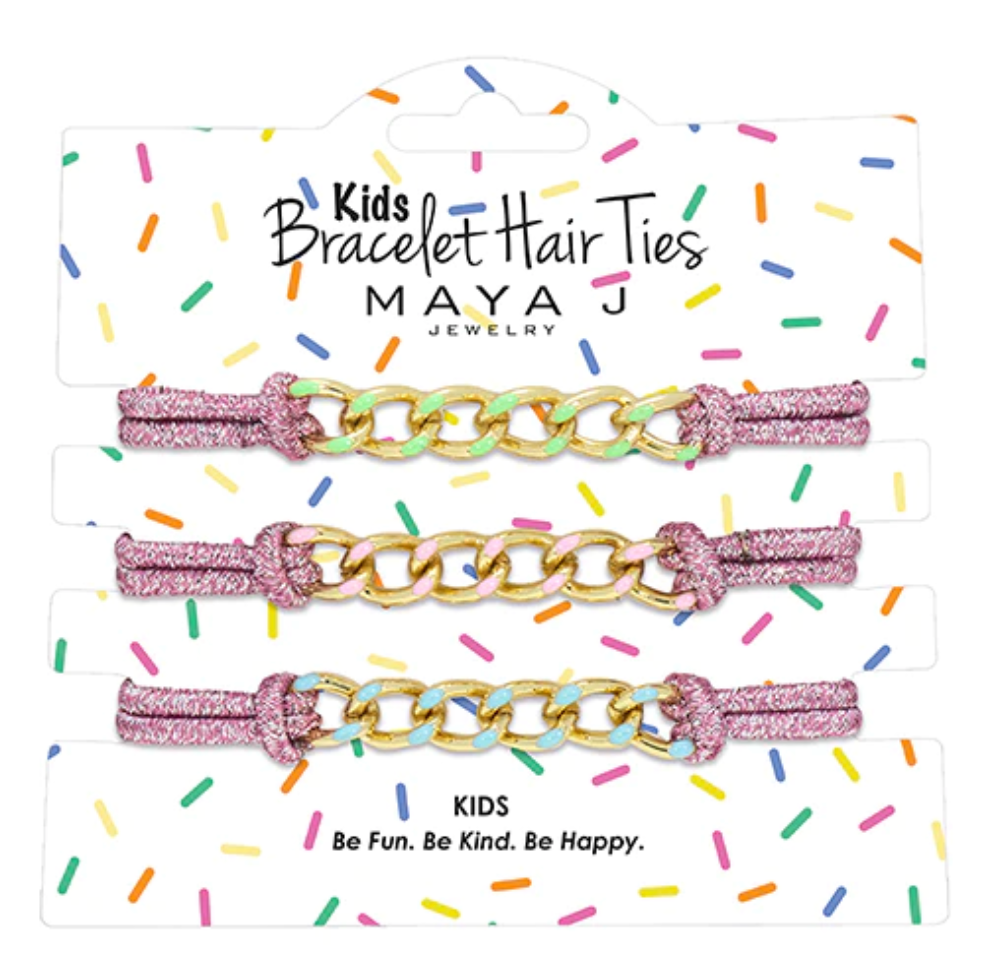 Kids Bracelet Hair Tie - Pink Elastic Cord Silver & Enamel Links