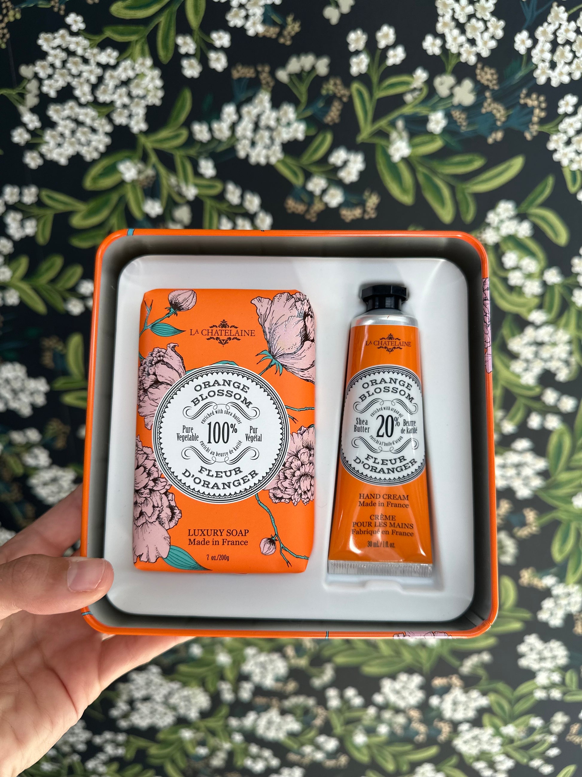 La Chatelaine vegetable-based soaps are made in Provence using time-honored craftsmanship and ethically-sourced natural and organic ingredients. Enriched with Organic Shea Butter, Organic Calendula, Organic Argan Oil, and Vitamin E to leave your skin feeling cleansed, soft, and moisturized. They are triple-milled, resulting in a long lasting bar with a luxurious lather. Our scents are phthalate-free and created by distinguished perfumers in Grasse, France. Cruelty-free and formulated without BHT, Parabens, Phthalates, Gluten, Soy, or GMOs. Chic embossed tins will keep your soaps dry, whether lathering up at home or jet setting through the Côte d’Azur. Ultra-Rich hand creams are blended with organic, fair-trade Shea Butter, Vitamin E and organic Argan Oil to deeply moisturize, nourish and protect. The creamy texture absorbs quickly for immediate hydration and intense repair to effectively leave hands soft, smooth and rejuvenated. This luxurious hand cream will become an essential part of your beauty ritual. Made in France, our purse-sized collection offers 20 intoxicating scents to choose from for modern style on the go.