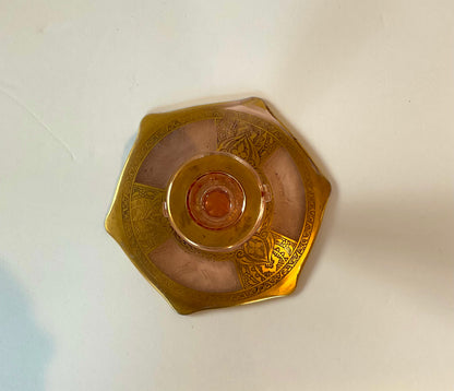 Pink Depression Candlestick with Gold Trim