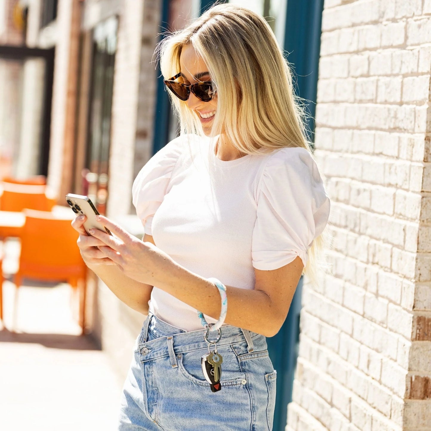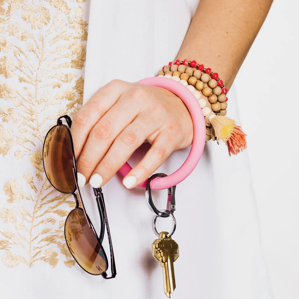 Color me happy! Classic Oventure colors and the life of the (arm) party. The Original Big O® Key Ring is a one-size-fits-all bracelet key ring that can be worn on your forearm or above your elbow for hands-free simplicity. The patented, signature locking clasp clicks open and closed so you can keep your keys, phone and wallet in one central, secure location.