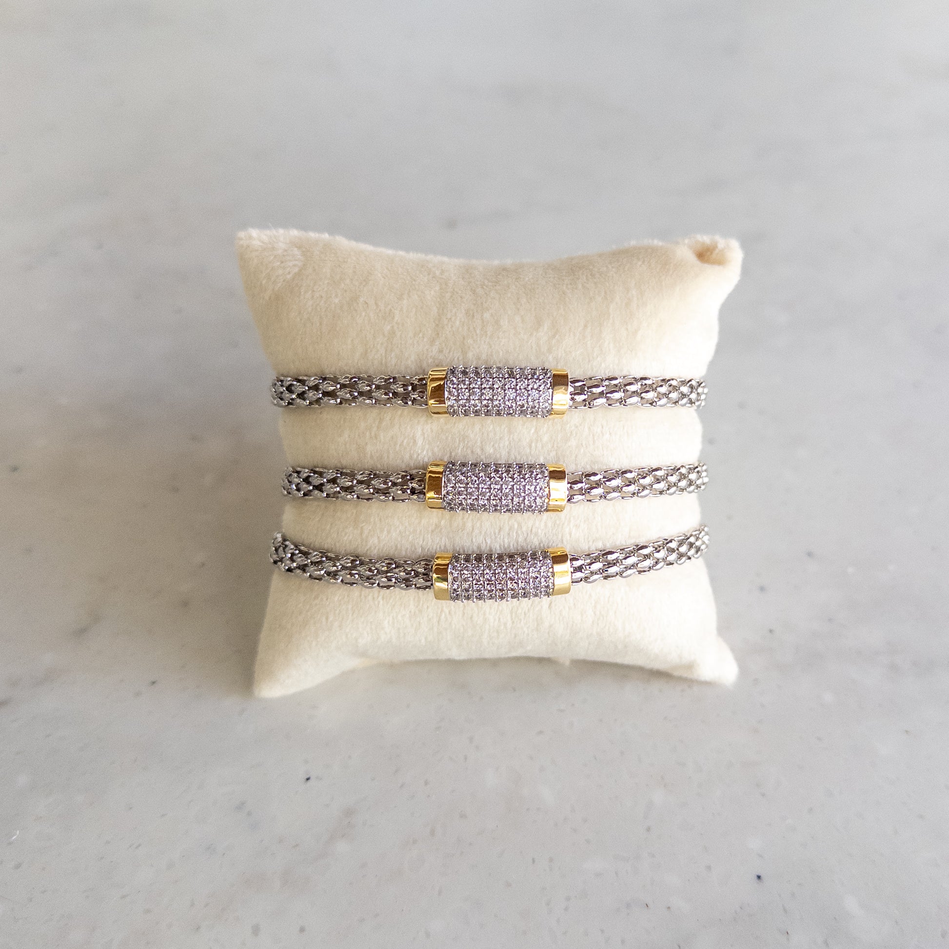 Two Tone CZ Caviar Magnetic Bracelet