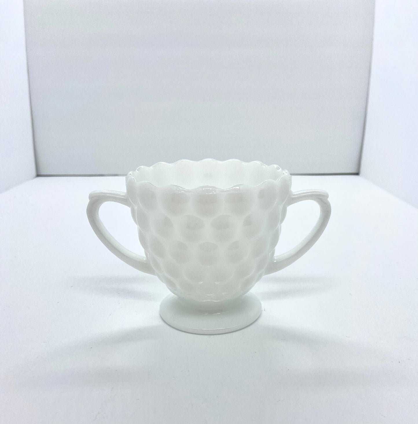 Vintage Anchor Hocking Bubble Hobnail Milk Glass Sugar Bowl w/ 2 Hobnails