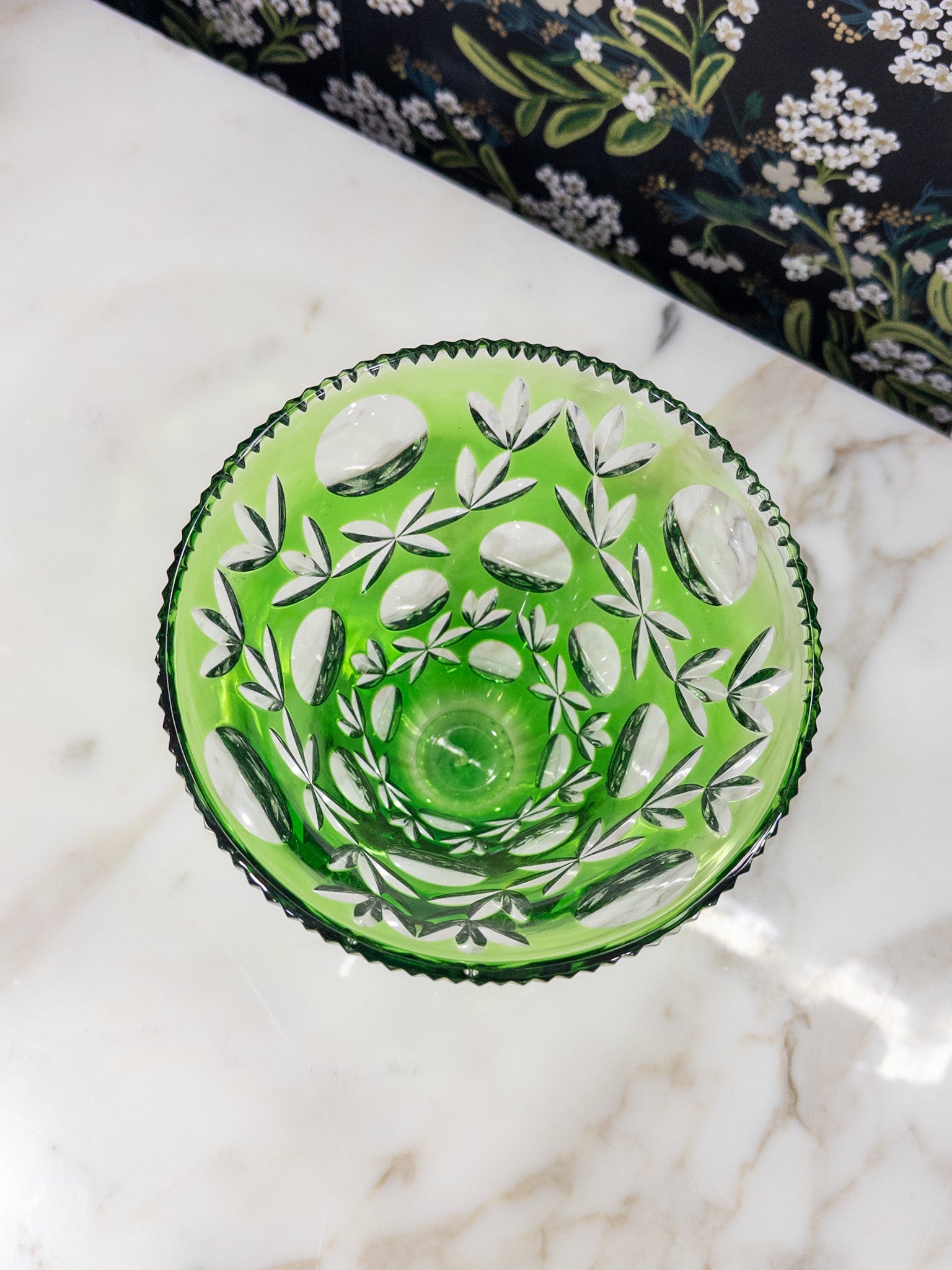 Vintage Emerald Bohemian Cut Glass Vase