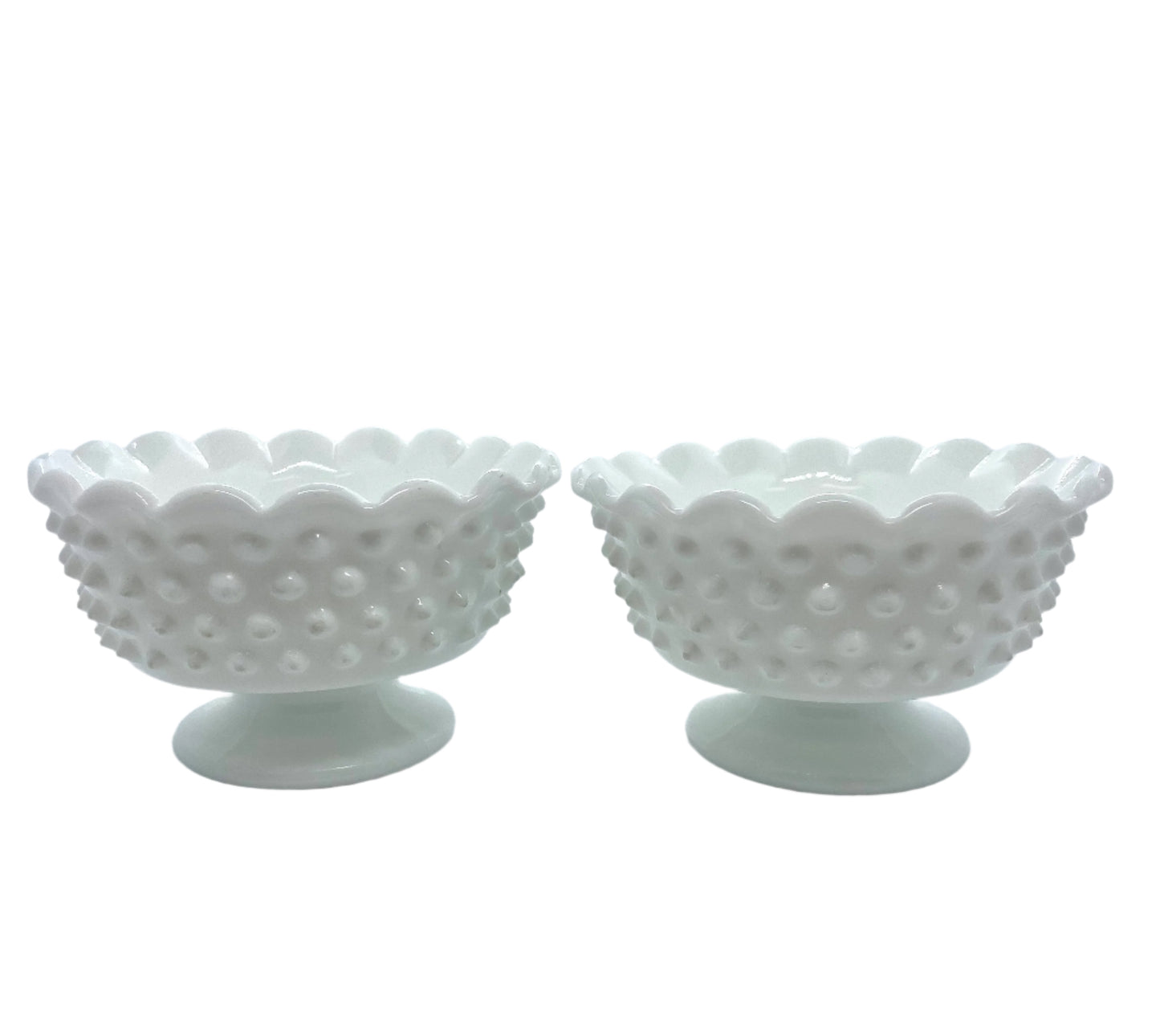 Vintage Hobnail Milk Glass Candle Holders, Set of 2