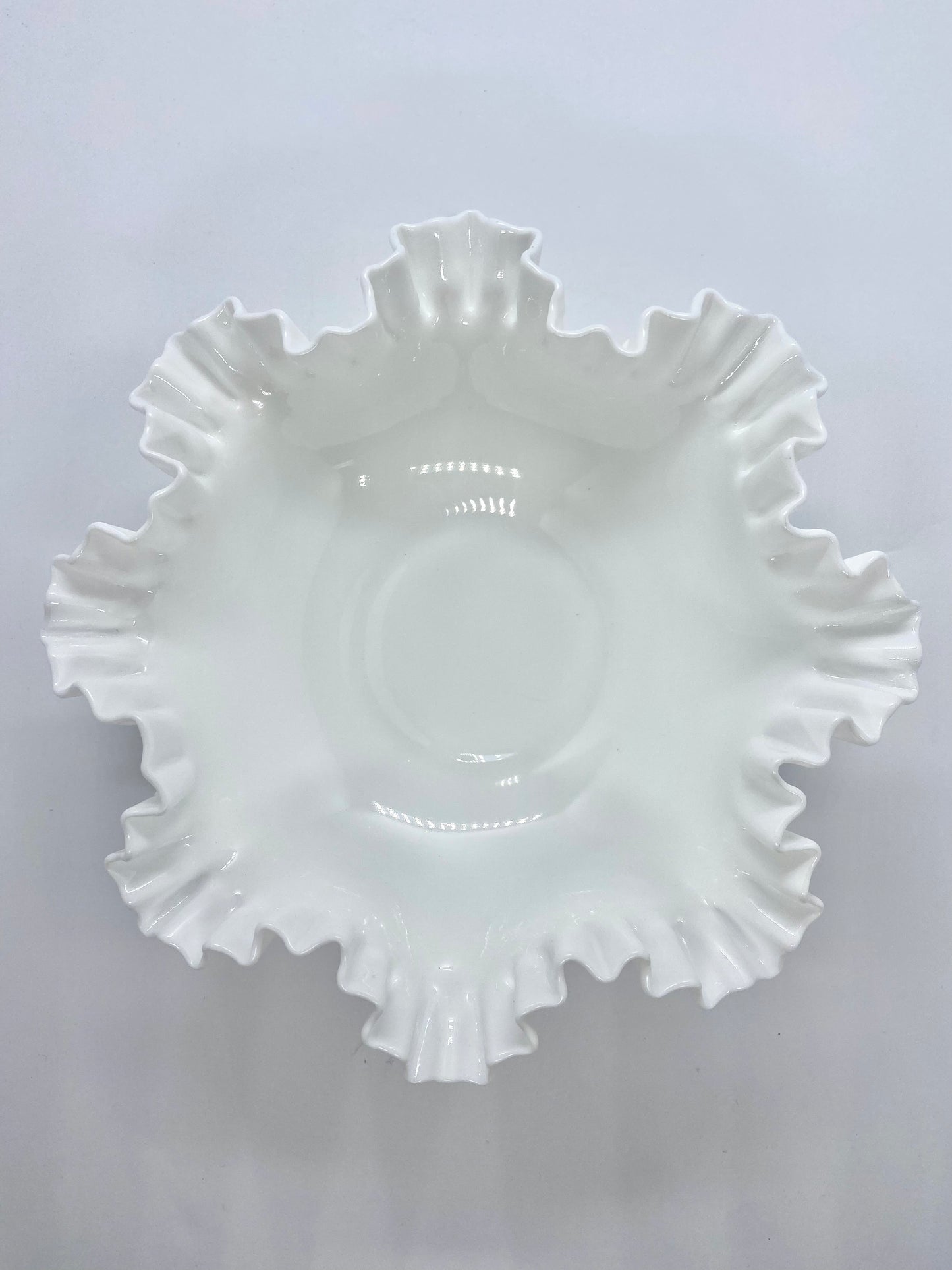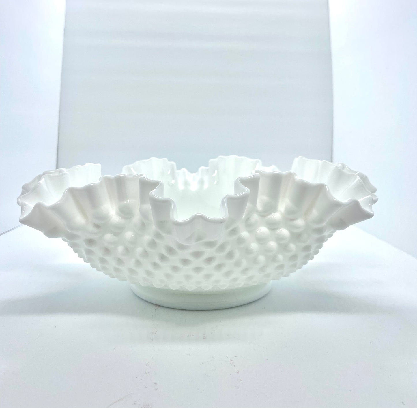 Vintage Milk Glass Large Fenton Hobnail Ruffled Bowl