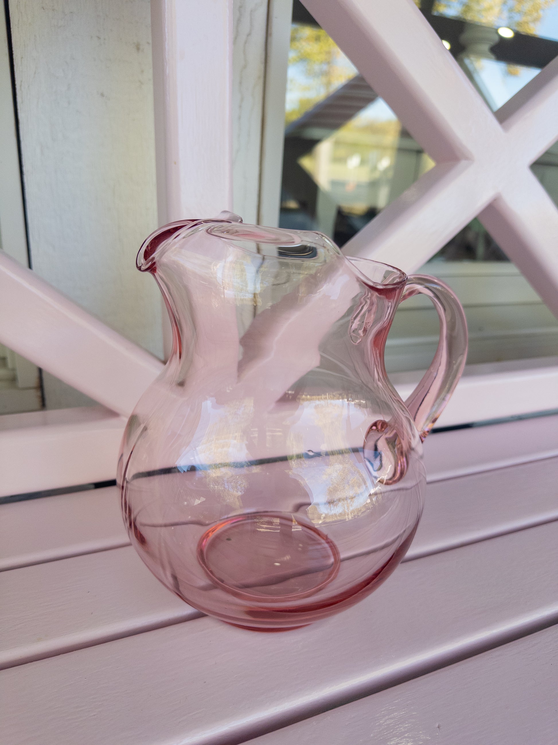 Vintage Pink Depression Glass Pitcher with Ice Guard