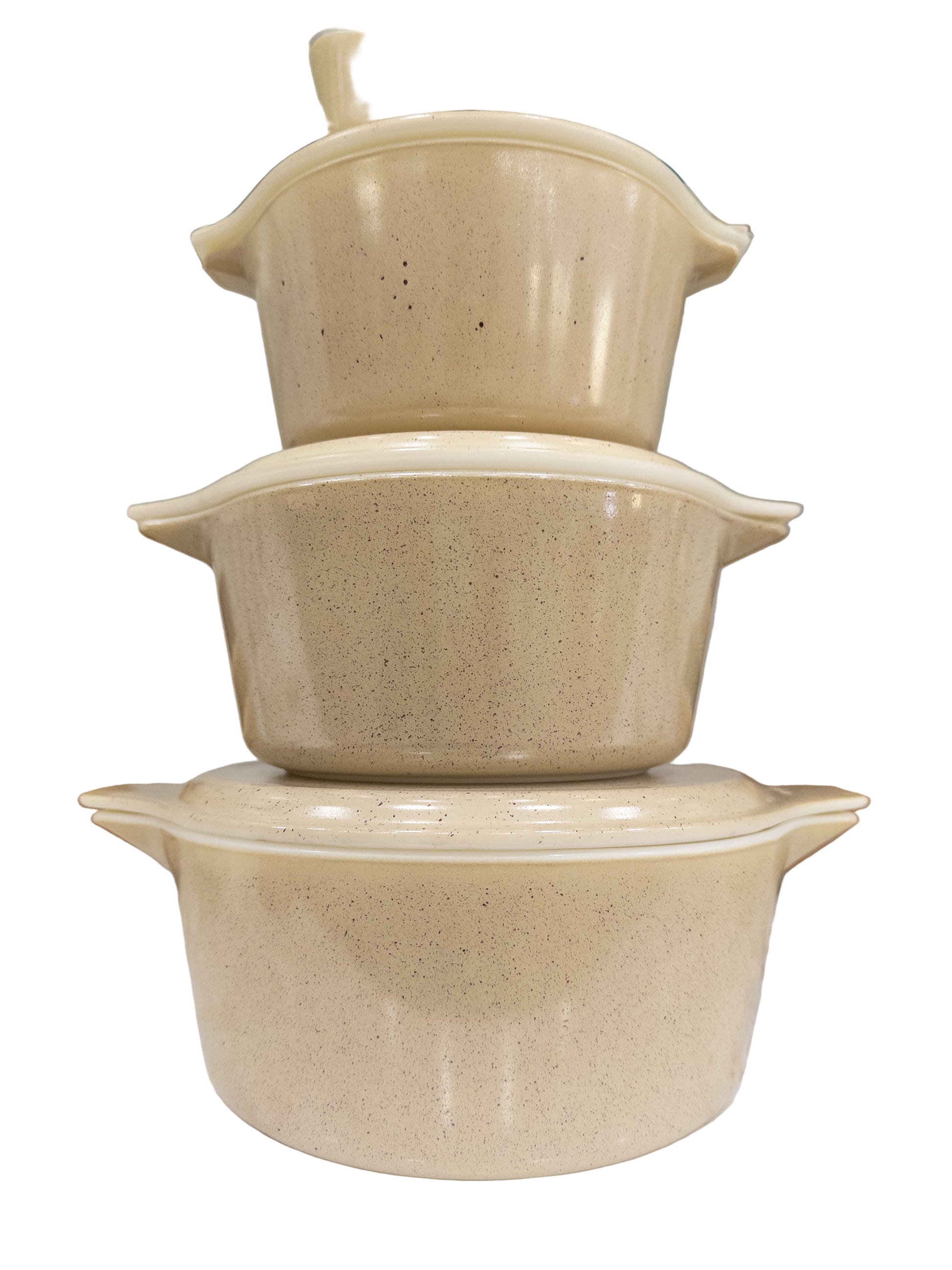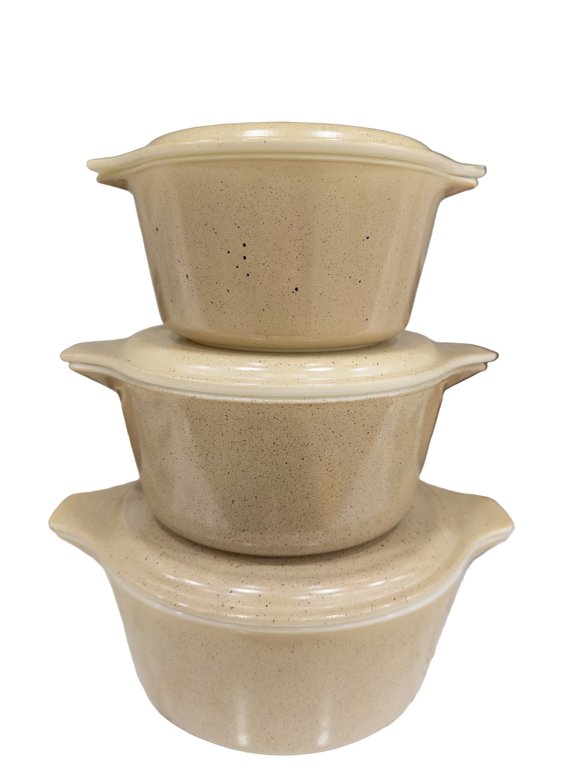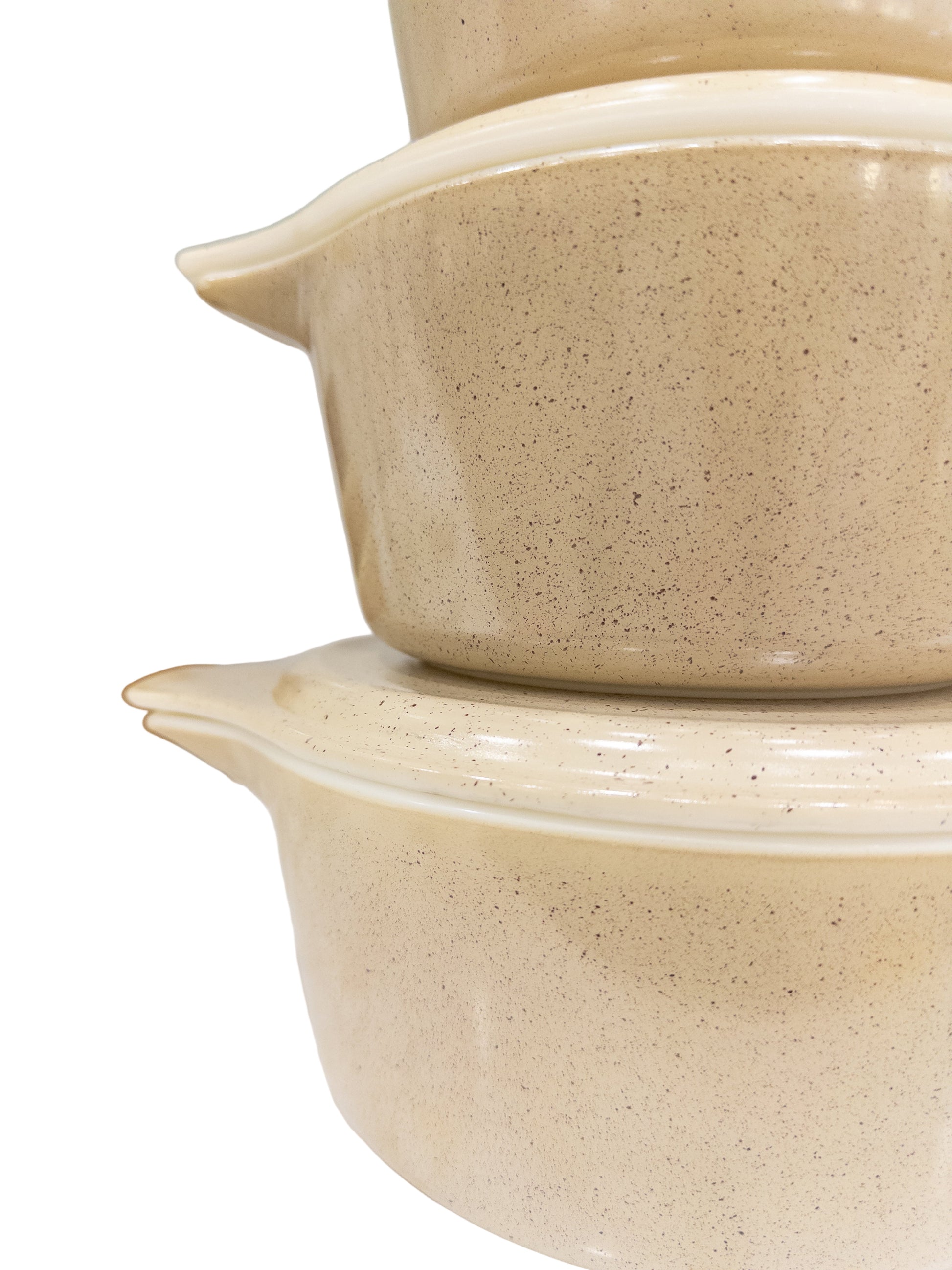 Vintage Pyrex Homestead Brown Speckled Casserole Dishes W/ Lids, Set Of 3